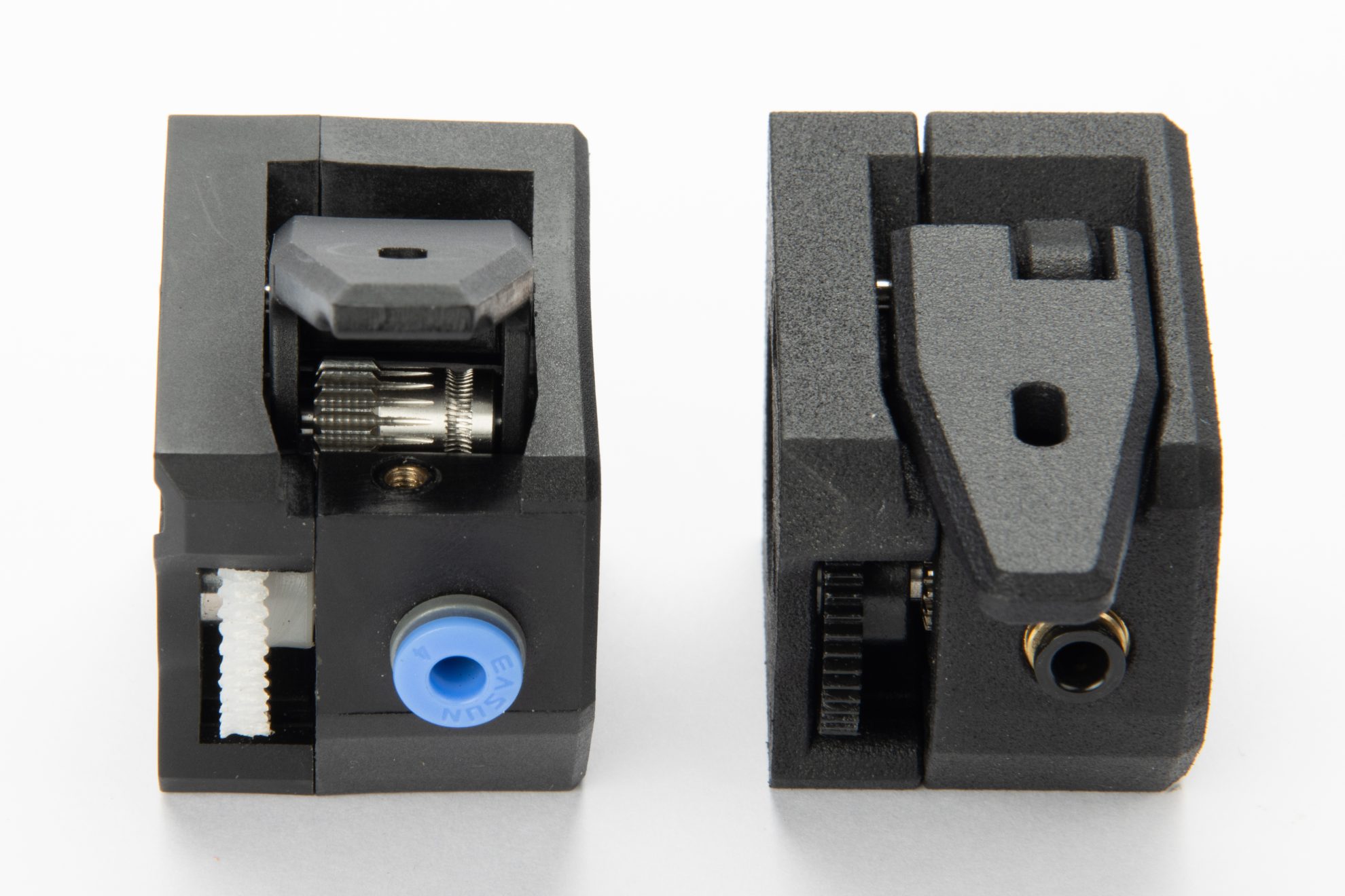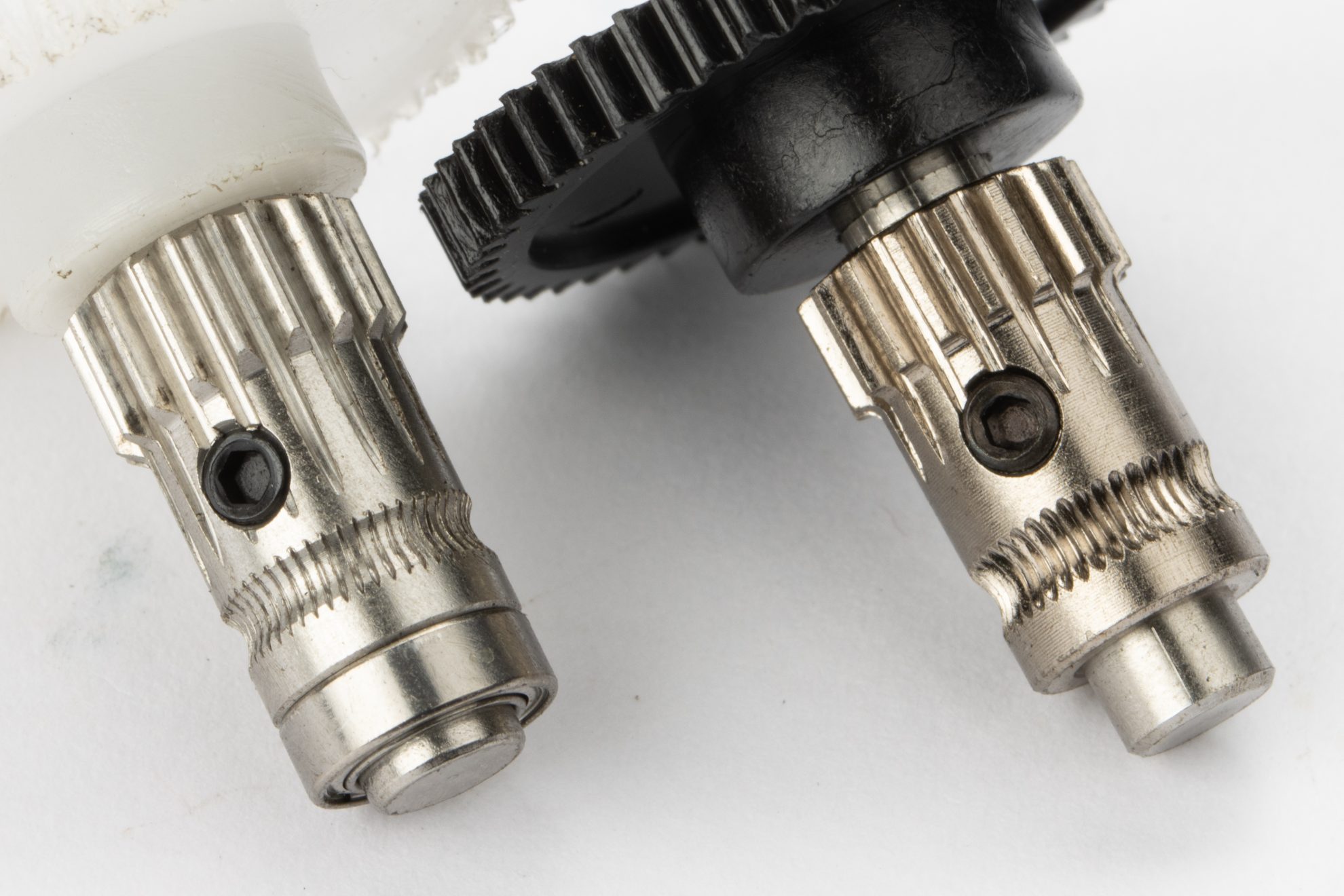 Here we call your attention to the big differences on the secondary drive gear especially in what regards to the machining. The filament pushing teeth definition and profile are so different, and actually are one of the reasons for the huge performance gap.