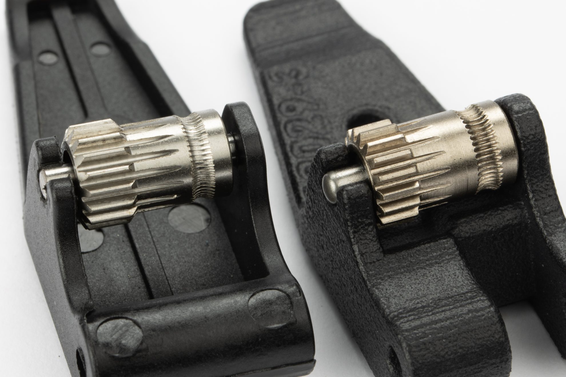 This comparison uses the clone we got (in all the pictures to the left hand side) and an old BMG™ (to the right hand side) that we use in our showroom. Our BMG™ was upgraded last September with the new black POM main gear.