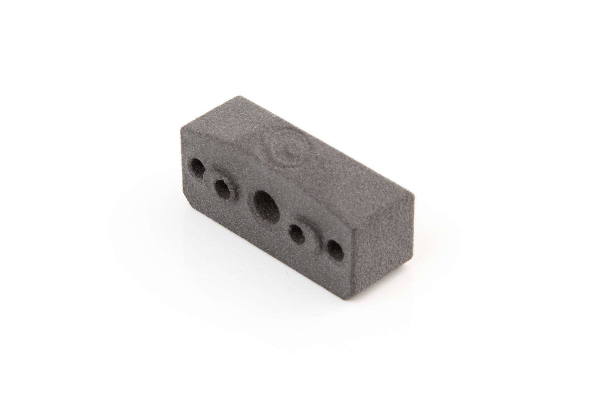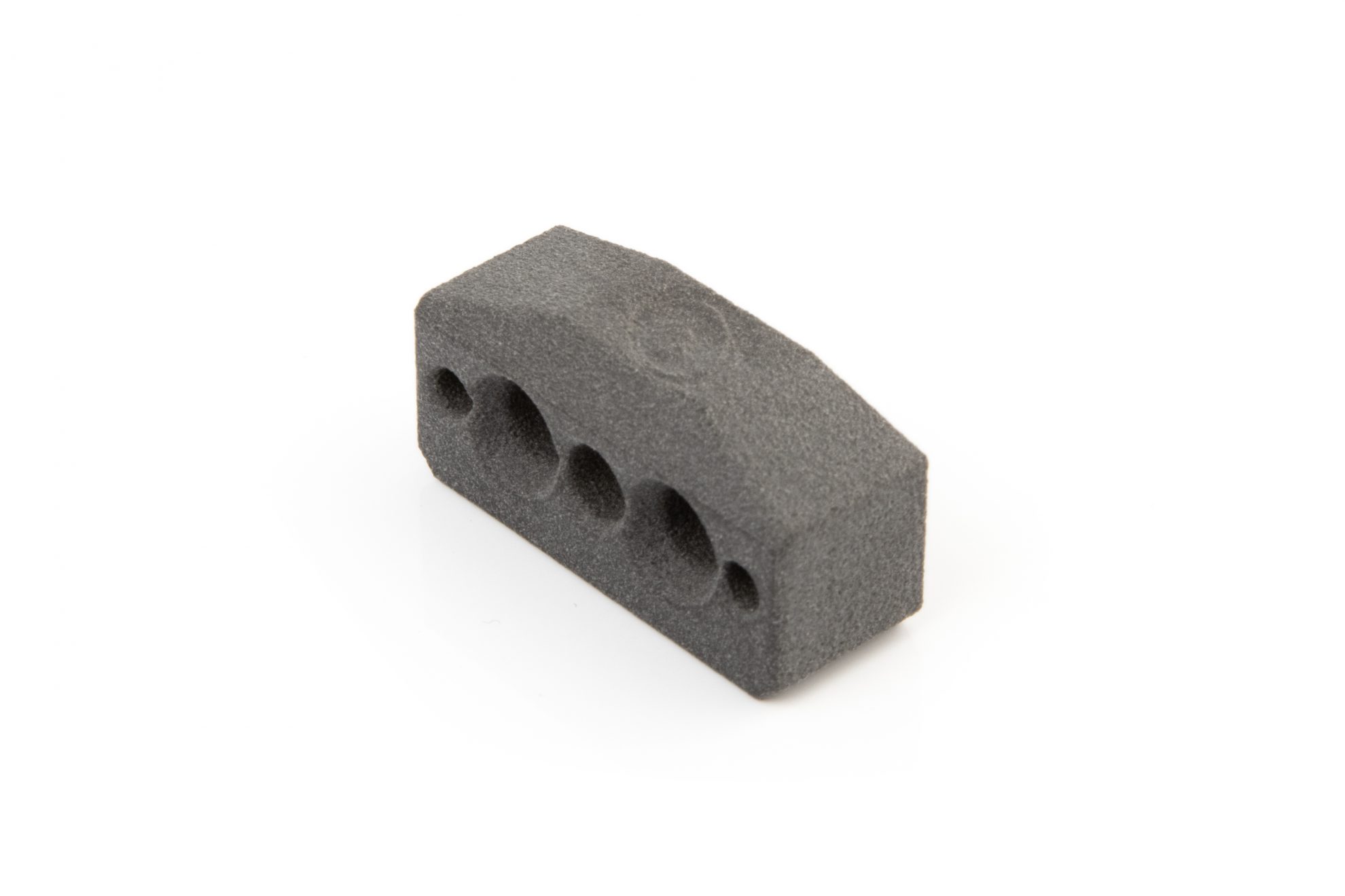 Plastic adapter made of grey Polyamide (PA12) with no dyeing featuring a wax protective coating.