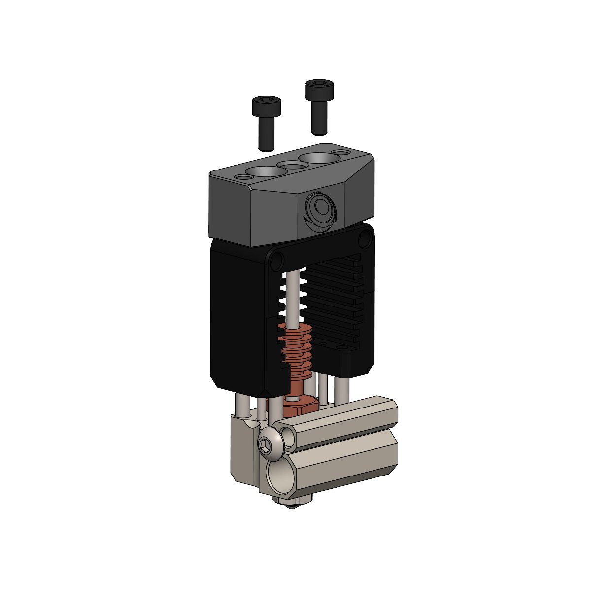 To mount the hotend on the adapter, use the M2.5x6mm screws included in your Slice Engineering hotend.